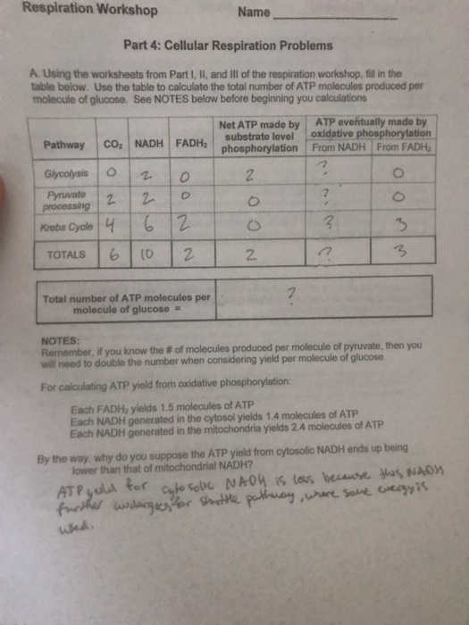 Respiration Workshop Name Part 4 Cellular Chegg Com